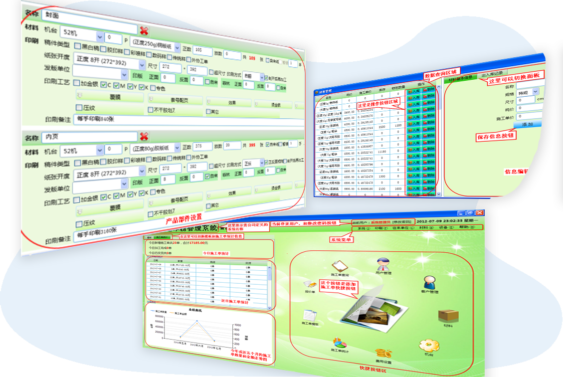 - 可實現(xiàn)印刷流程無紙化管理,包括財務、機臺、銷售多端功能,數(shù)據(jù)自動流轉(zhuǎn)。
